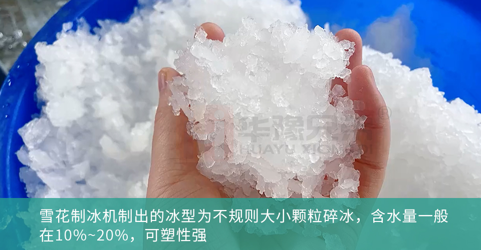 雪花制冰機制出的冰為不規則大小顆粒狀,含水量一般在10%~20%,可塑性強,適合鋪在超市冰臺底層,能緊密貼合海鮮、肉類,起到均勻保濕的作用,但易融化、易結塊,需頻繁補冰,更適合超市小型冰臺或高端刺身陳列。